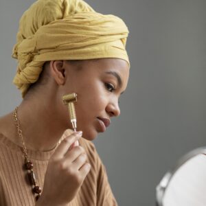 Skincare kit with microneedling and growth factor serum to rejuvenate and repair skin.